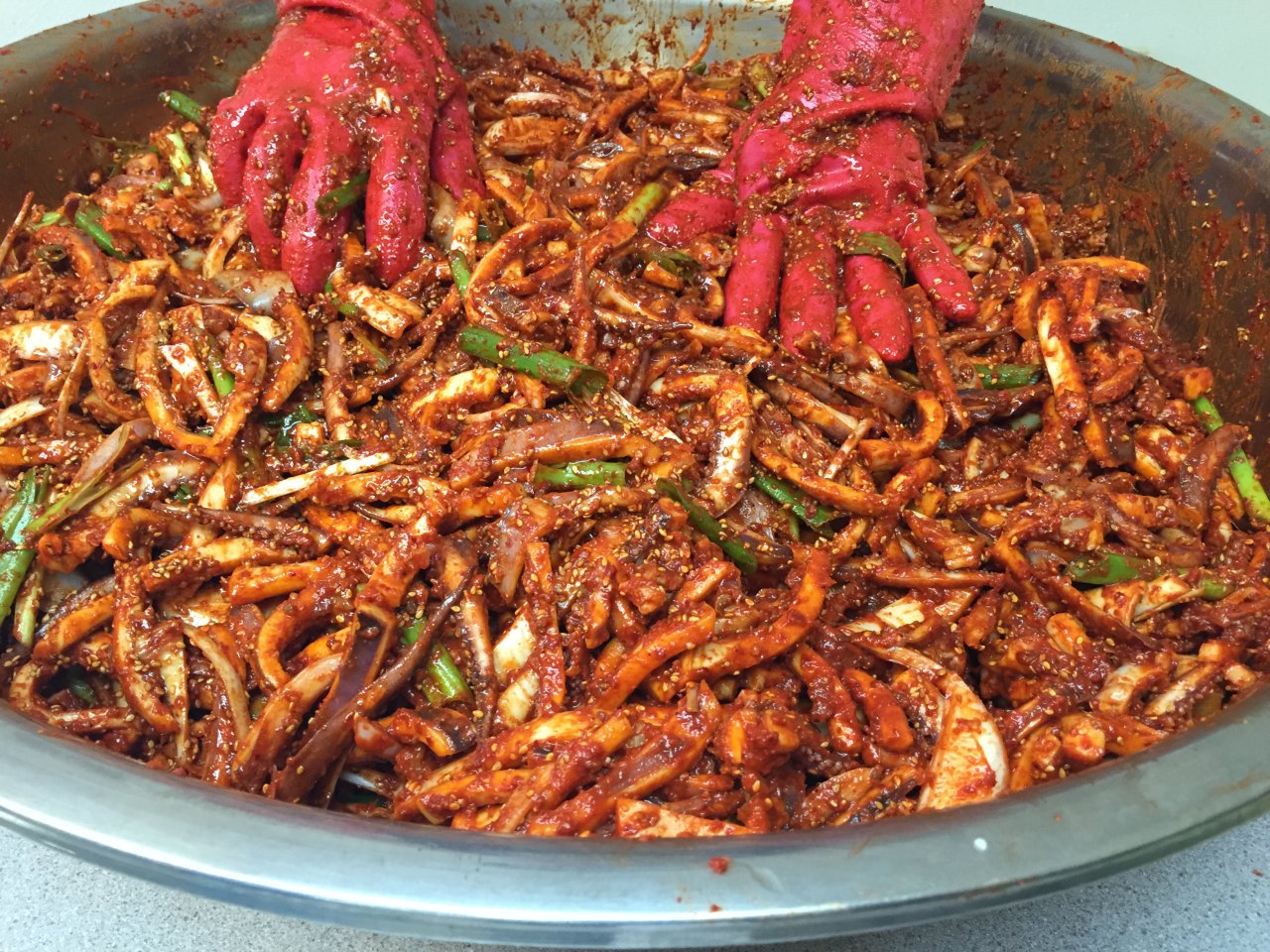 매콤 달콤한 오징어 볶음과 적당히 잘 익은 무 김치가
