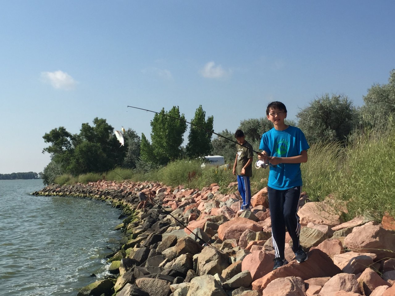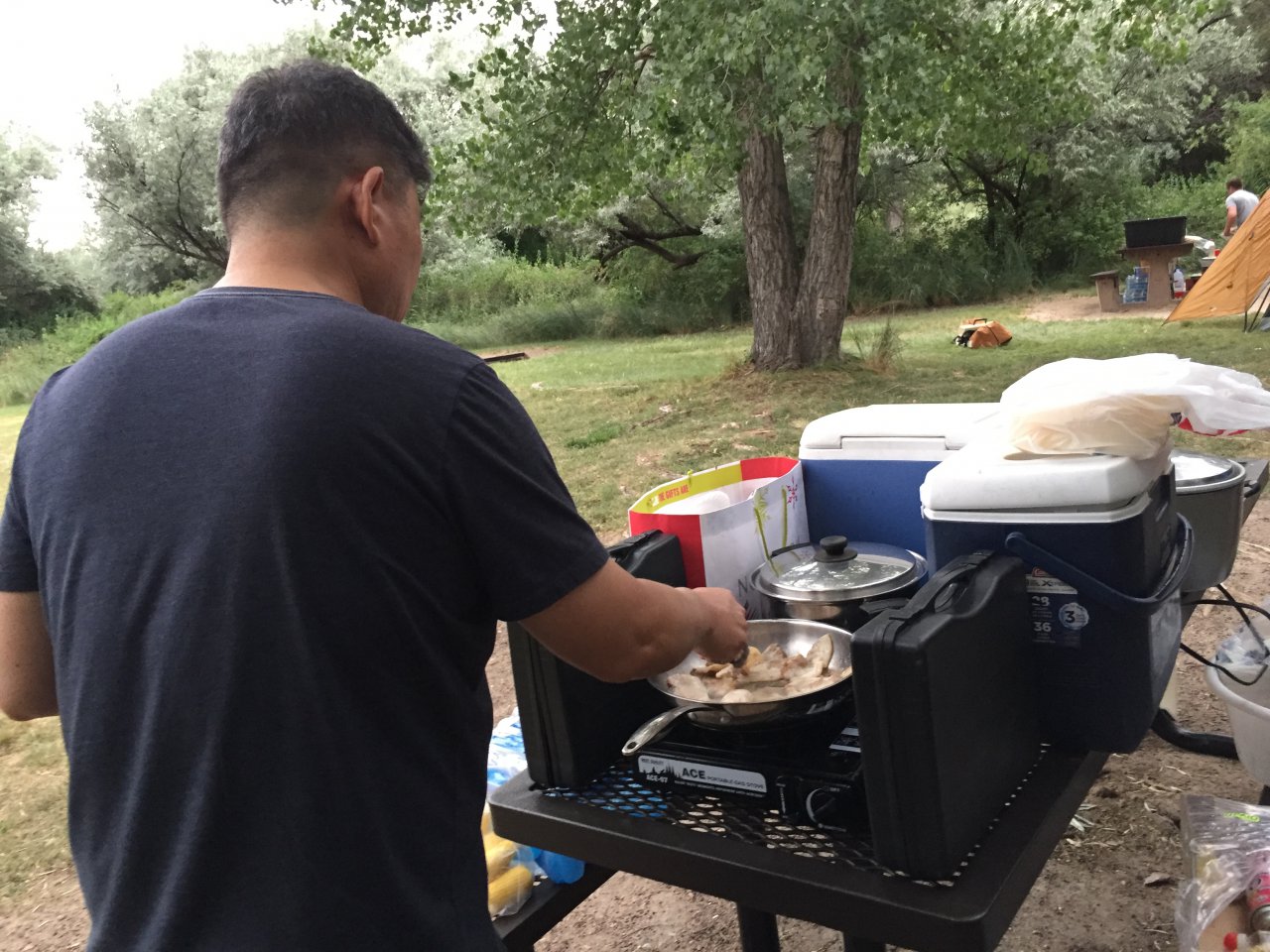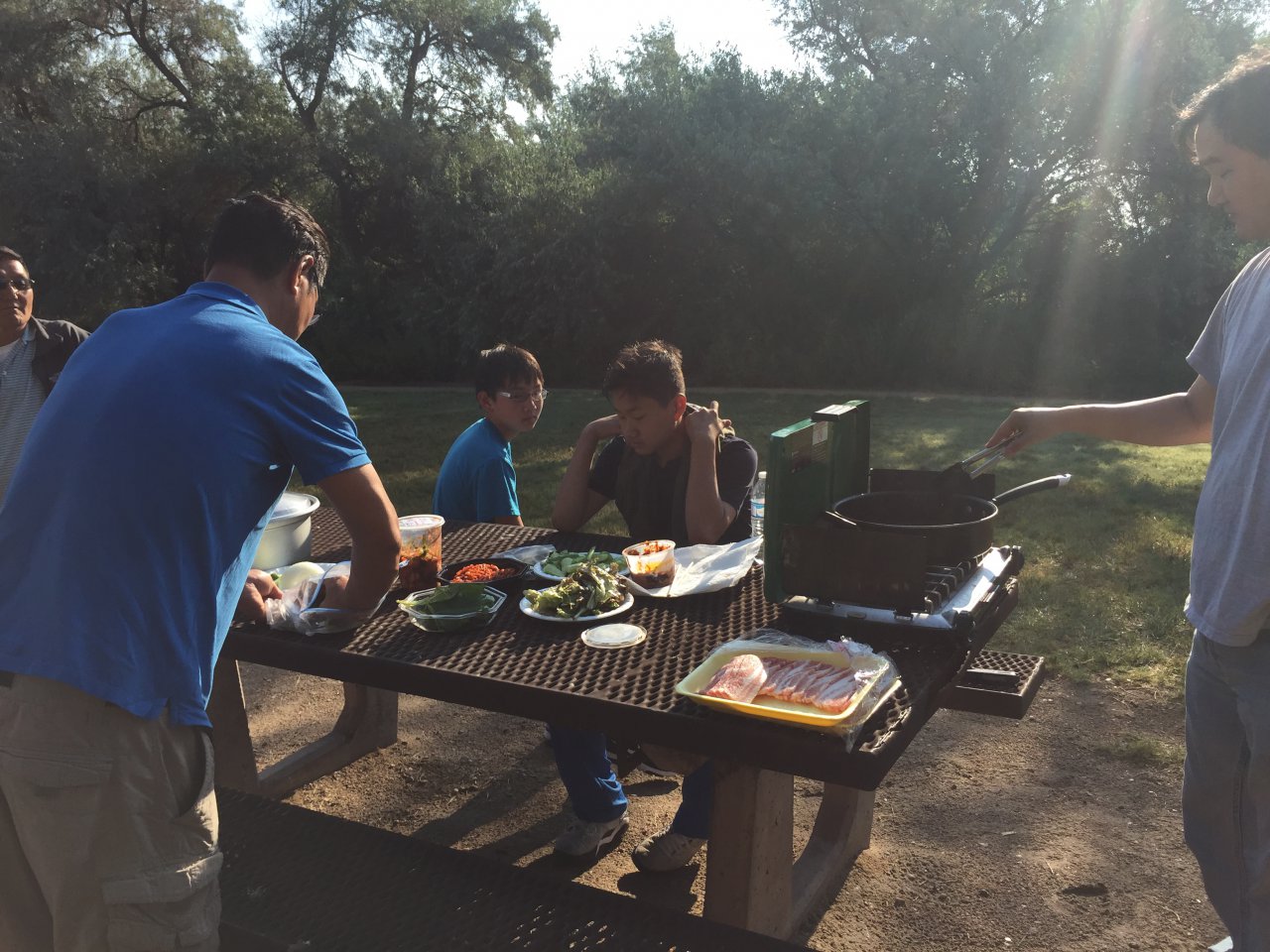 모여서 낚시도 하고 음식도 만들어 먹고,